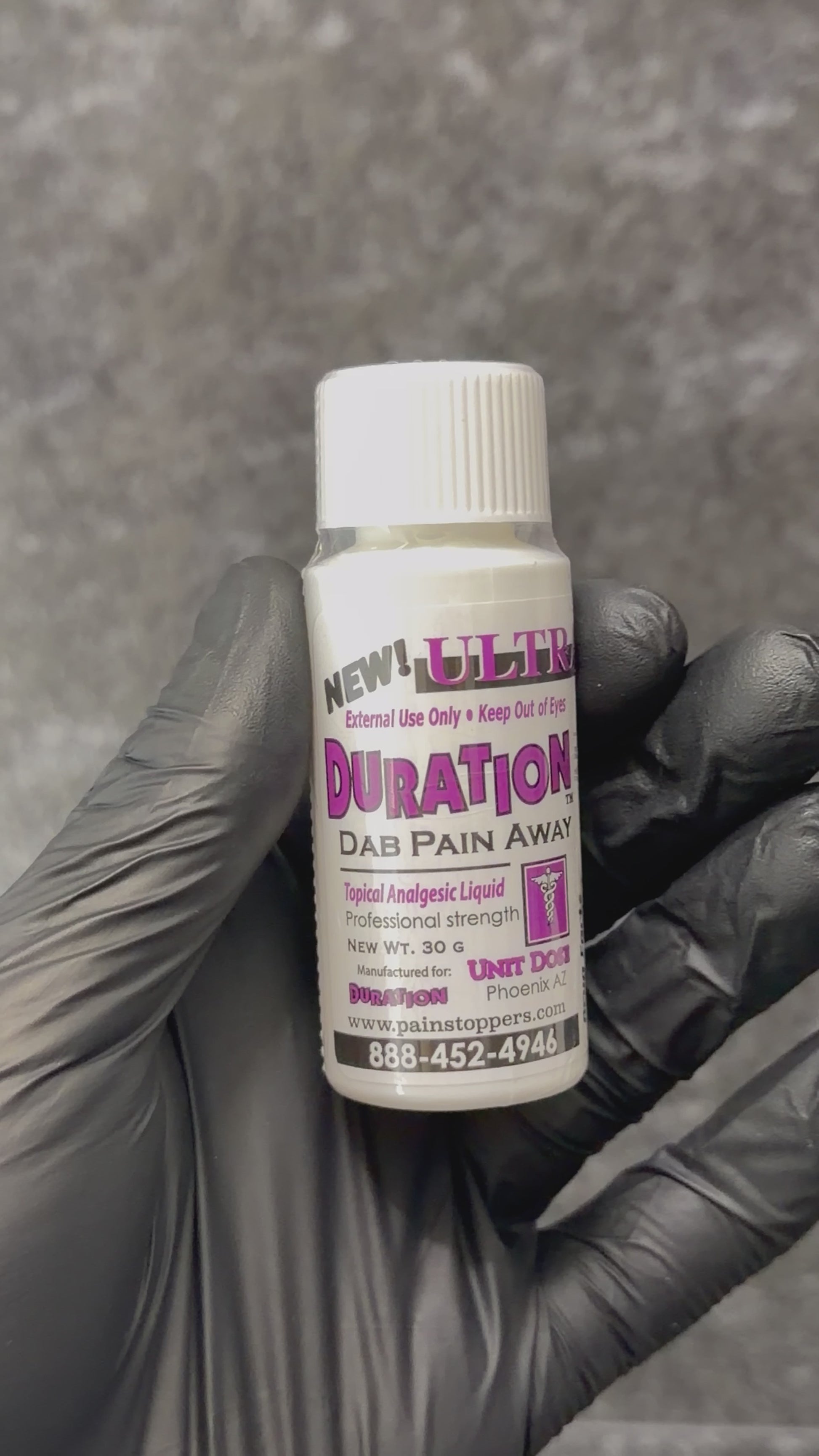 Ultra Duration to płynny preparat do stosowania punktowego na skórę naruszoną podczas tatuażu, microbladingu czy makijażu permanentnego. Działa szybko, zapewniając klientowi komfort w trakcie zabiegu. Dzięki prostej aplikacji „dab” można go łatwo i precyzyjnie nałożyć dokładnie tam, gdzie jest potrzebny. To profesjonalne wsparcie dla osób, które chcą pracować sprawnie, a jednocześnie zadbać o wygodę klienta.